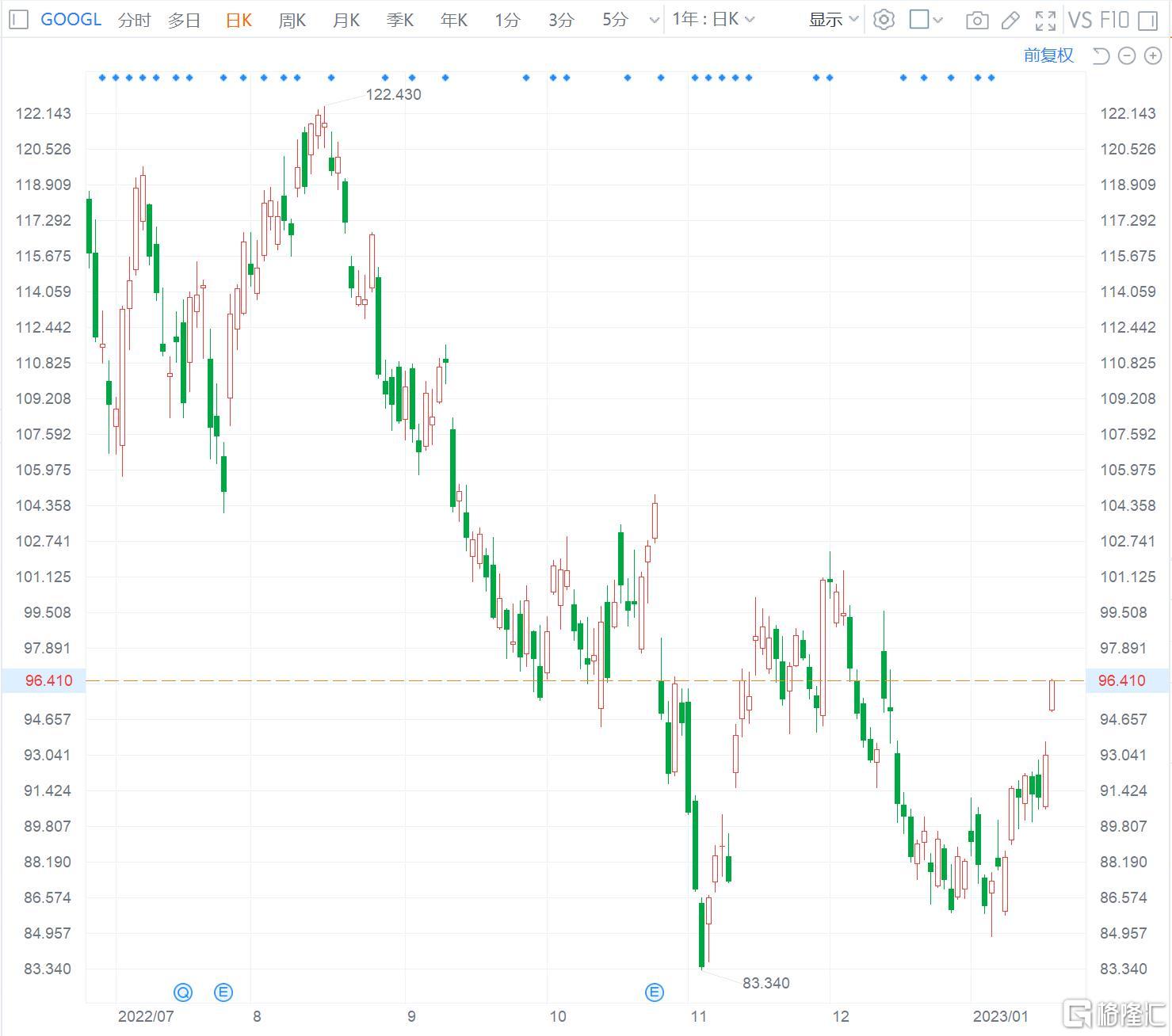 格隆汇1月20日丨谷歌(GOOGL.US)涨3.58%,报96.38美元,总市值1.25万亿美元。母公司Alphabet将裁减约1.2万个工作岗位,占其全球员工总数的6%以上,CEO表示经济形势已和过去不同。